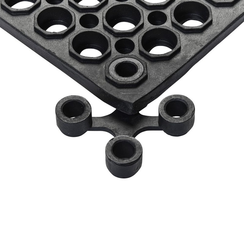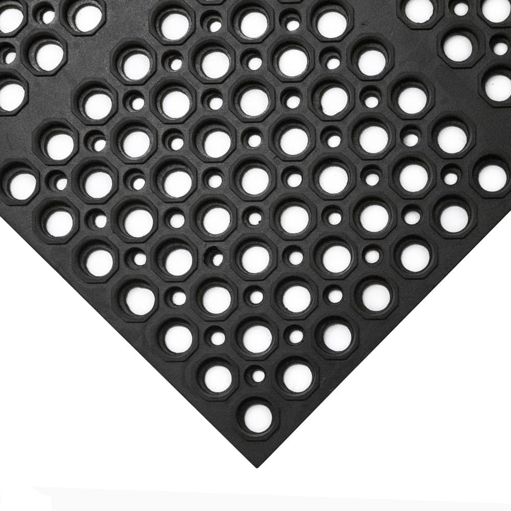 A szőnyeg kiváló csúszásgátló és álláskönnyítő felületet biztosít. A szőnyeg vizes és olajos területeken egyaránt alkalmazható és a lyukacsos kialakításának köszönhetően tökéletesen elvezeti a kiömlő vizet. Természetes gumiból készült anyaga miatt nagyon teherbíró, és csökkenti az esélyét a leeső üveg eltörésének. A szőnyeg kültérre és beltérre egyaránt javasolt. A szőnyeg alkalmazható vendéglátó egységekben, bárpultokban, ipari környezetben, beléptető szőnyegként egyaránt. A szőnyegekhez elérhető fekete és sárga élzáró elem és kapcsoló elemek is egyaránt.