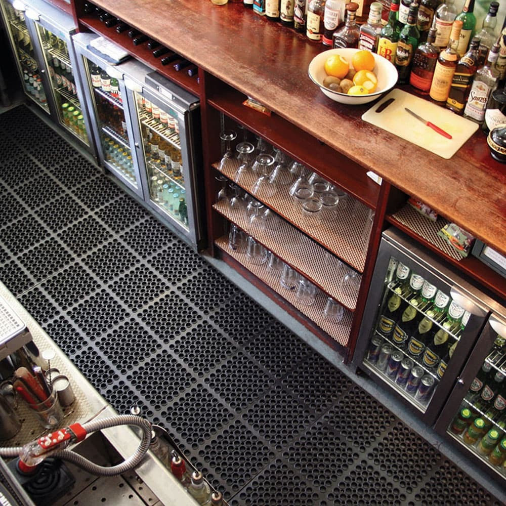 A szőnyeg kiváló csúszásgátló és álláskönnyítő felületet biztosít. A szőnyeg vizes és olajos területeken egyaránt alkalmazható és a lyukacsos kialakításának köszönhetően tökéletesen elvezeti a kiömlő vizet. Természetes gumiból készült anyaga miatt nagyon teherbíró, és csökkenti az esélyét a leeső üveg eltörésének. A szőnyeg kültérre és beltérre egyaránt javasolt. A szőnyeg alkalmazható vendéglátó egységekben, bárpultokban, ipari környezetben, beléptető szőnyegként egyaránt. A szőnyegekhez elérhető fekete és sárga élzáró elem és kapcsoló elemek is egyaránt.